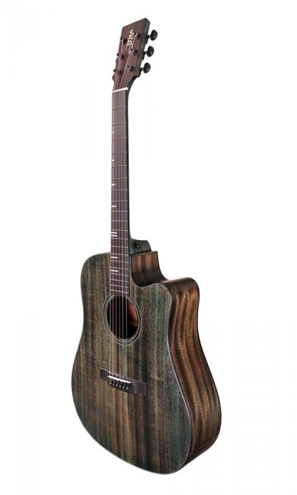 Топ - цільний з червоної деревини (махагоні), боковини та задня дека - червона деревина (махагоні), накладка на гриф - палісандр.