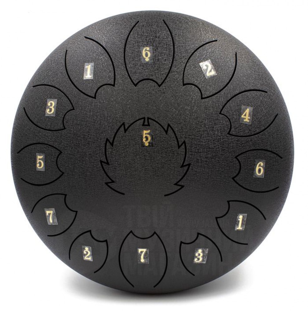 Глюкофон стальной, 13 нот Диаметр: 12" (305мм) Цвет: черныйКомплектация: Глюкофон, Чехол с ремнем на плечо, Палочки (2шт), Подставка для палочек, 6 резиновых накладок для игры пальцами, Запасные наклейки с номерами язычков, Брошюра с нотами
